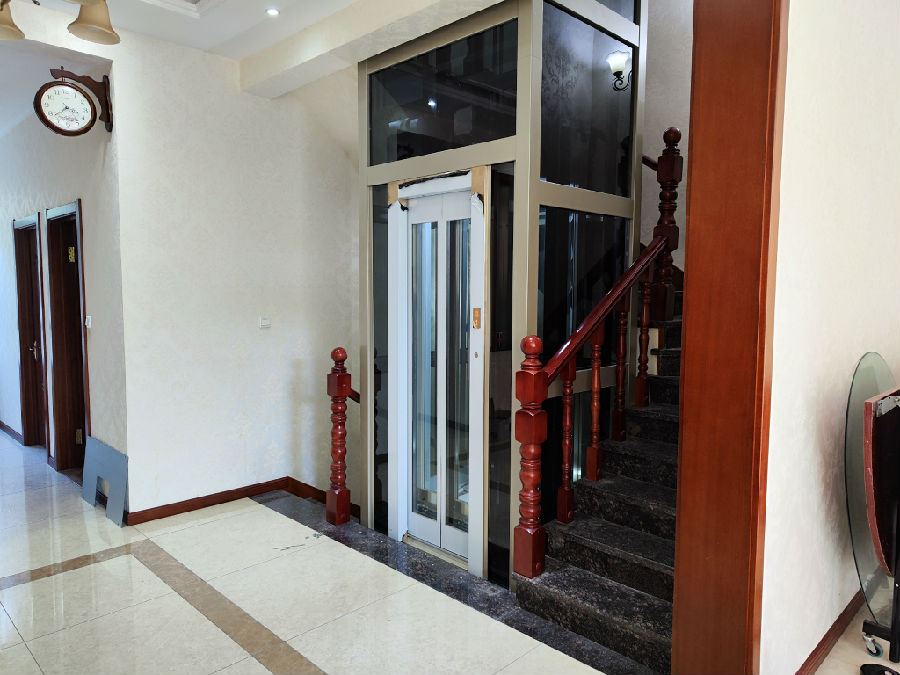 电梯选材:香槟金观光钢架+轿厢观光配香槟金发纹+欧洲灰8mm观光玻璃